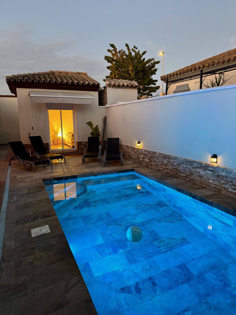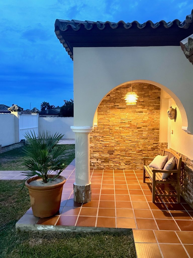 Wunderschönes Ferienhaus zentral gelegen in einer ruhigen Wohngegend zwischen dem quirligen Zentrum von Chiclana de la Frontera und den fantastischen, feinsandigen Stränden der Costa de la Luz. Mit viel Liebe zum Detail eingerichtet und mit Besonderheiten wie der großen mit einer ausgefallenen Holzkonstruktion überdachten Terrasse und dem angrenzenden gemauerten BBQ-Bereich mit Tresen bietet sich Dos Amigos für einen gelungenen Urlaub an.